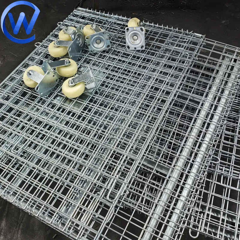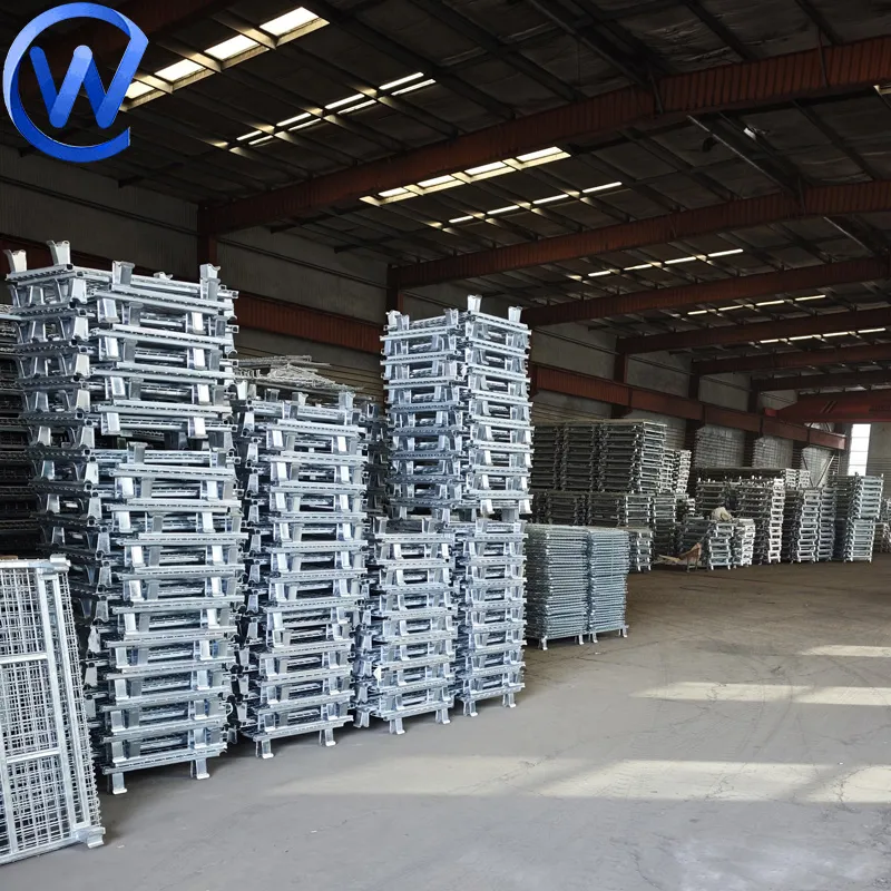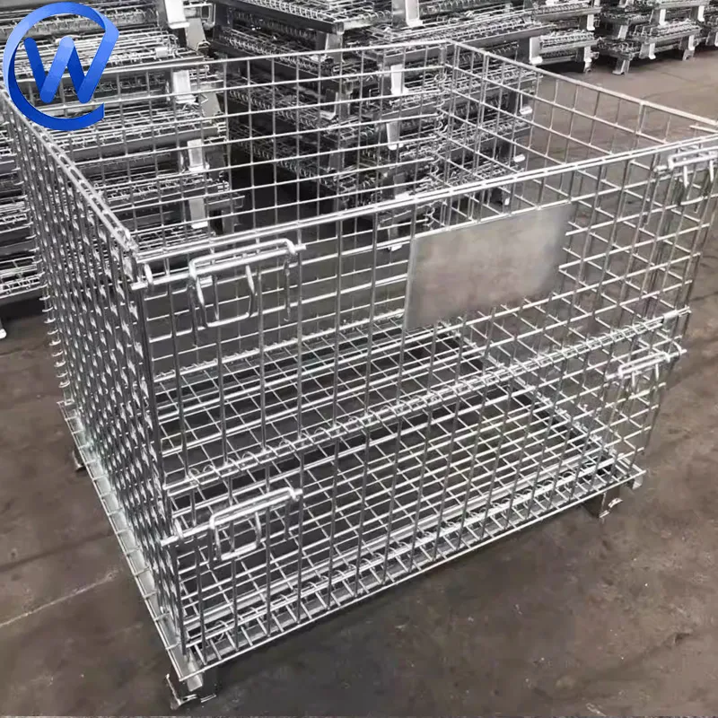 | அம்சங்கள் | 1.Collapsible - save space when not in use,ideal for return journeys 2.Standard half - hinged gate access 3.Square-stack leg - secure stacking 4.Open wire mesh design - Clear view of product inside container 5. Easily moved around by forklift, even when fully loaded 6.Stackable - Space saving |